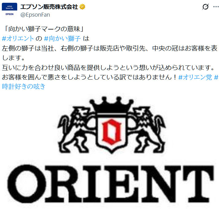 ちなみに、オリエントのロゴは向かい獅子と呼ぶようで、その意味はXの方で解説されています!